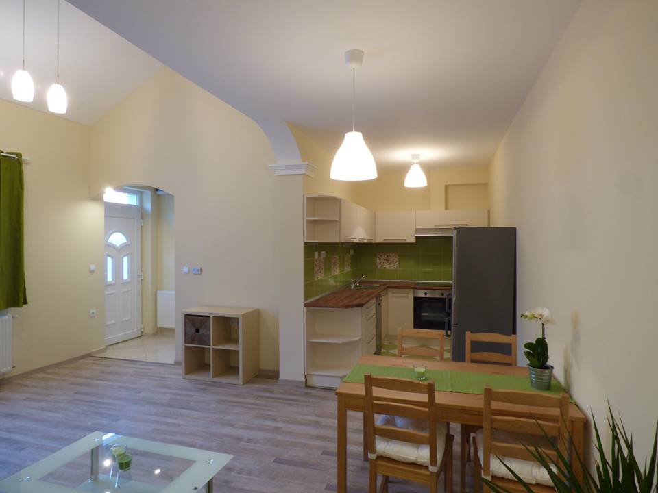 A lakás teljesen berendezett, gépesített (hűtőszekrény, mosógép, mosogatógép, beépített kerámia főzőlap és sütő, páraelszívó, klímák).
