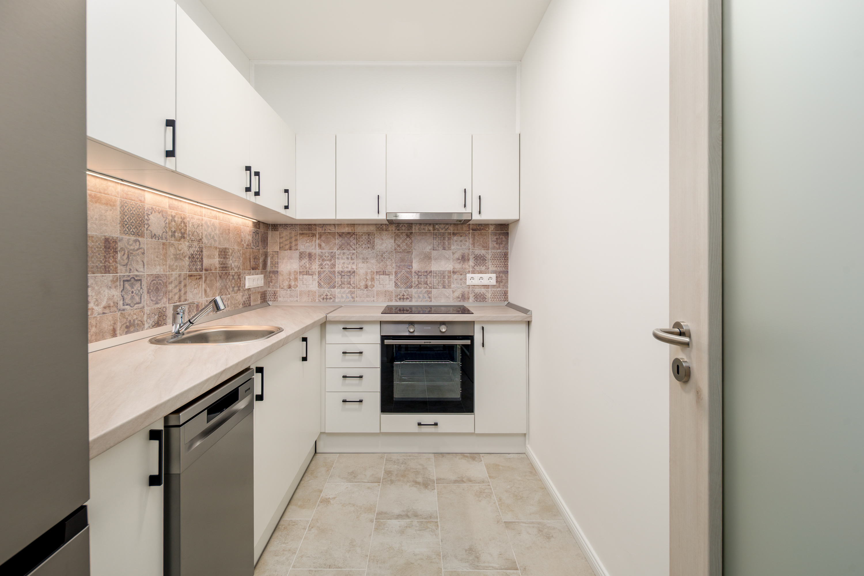 A lakás teljesen berendezett, gépesített (hűtőszekrény, mosógép szárítógéppel, mosogatógép, beépített kerámia főzőlap és sütő, páraelszívó, fan-coil, elektromos redőny).