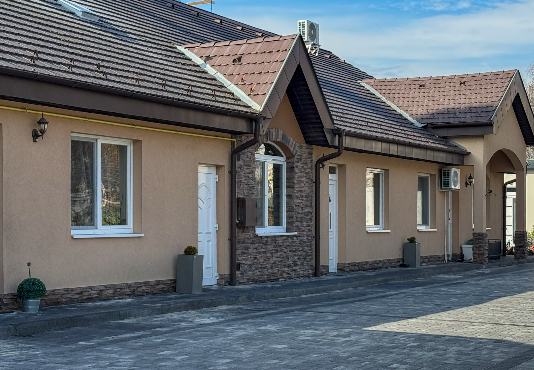 - Parkolás: Felszíni beálló vagy garázs külön térítés ellenében