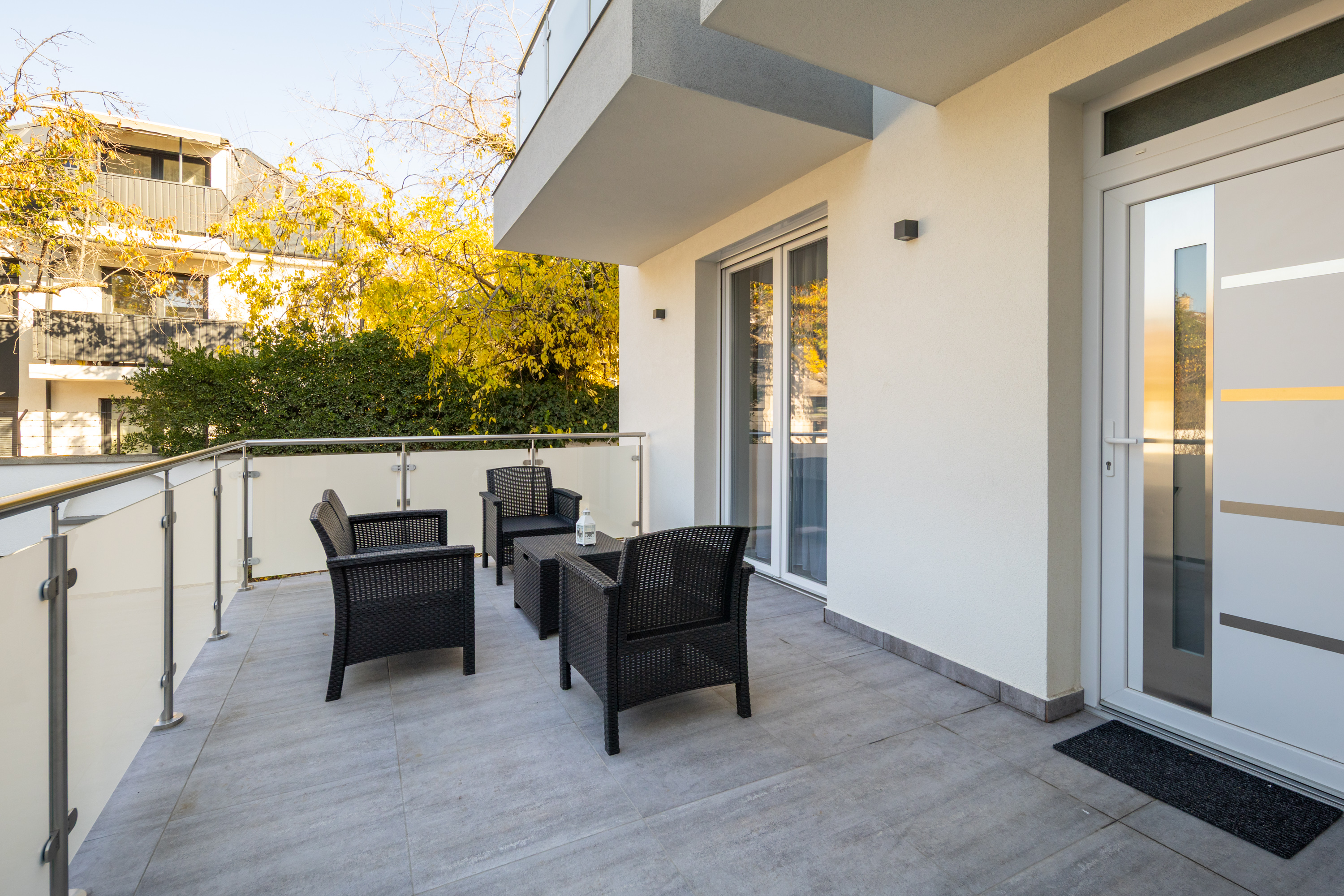 - Parkolás: Felszíni beálló vagy garázs külön térítés ellenében